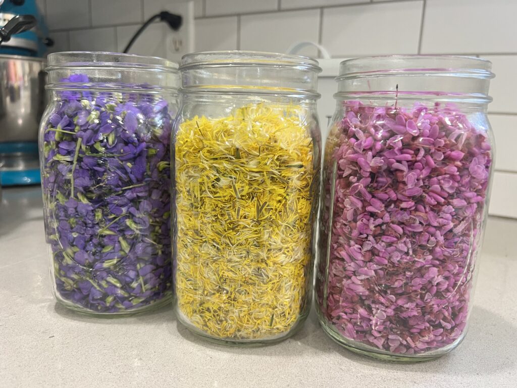 In April I signed up for a class at a nearby farm to learn foraging for edible wildflowers. We gathered dandelions, redbuds, and violets and learned how to prepare them and make jam. I couldn’t wait to get home and try it for myself!